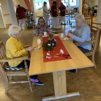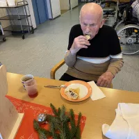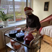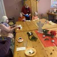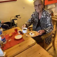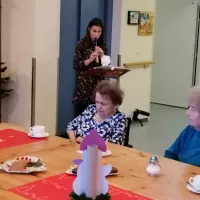 Am 1. Weihnachtsfeiertag gab es eine gemütliche Weihnachtsrunde. Es wurden Weihnachtslieder gesungen, die Frau Jassmann vom Begleitenden Dienst auf ihrem Keyboard begleitete. Es wurden Weihnachtsrätsel gelöst und schöne weihnachtliche Geschichten vorgelesen. Am Nachmittag zog ein herrlicher Duft nach frisch gebackenen Waffeln durch das ganze Haus, die sich alle Bewohner genüsslich schmecken ließen.