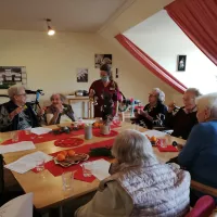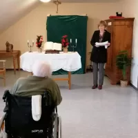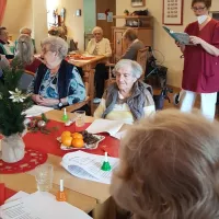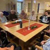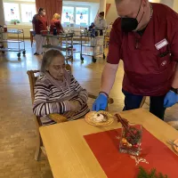 Die Weihnachtsfeiertage verbrachten unsere Bewohnerinnen und Bewohner ruhig und besinnlich. Am Heiligen Abend fand eine Weihnachtsandacht mit der Diakonin Frau Heidi Hein statt. Eindrucksvoll schilderte Frau Hein die Beziehung der Menschen zu Gott. Gedanken und Vergangenes und Kommendes wurden angeregt und gemeinsam in bekannten Weihnachtsliedern zum Ausdruck gebracht. Musikalisch begleitet wurde die Andacht von Frau Gerbrich auf ihrem Akkordeon.