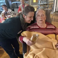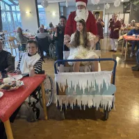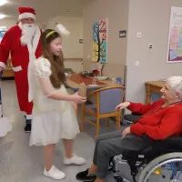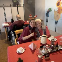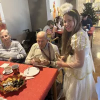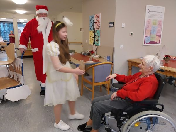 Höhepunkt war der Besuch des Weihnachtsmannes, der auch in diesem Jahr wieder so einiges über unsere Bewohnerinnen und Bewohner wusste. Gemeinsam mit seinem Engel verteilte er Präsente an die Bewohner im Hausrestaurant, bevor die beiden dann noch über die einzelnen Wohnbereiche gingen und auch bei den Bewohnern Weihnachtsfreude verbreiteten, die aus gesundheitlichen Gründen nicht an der Feier teilnehmen konnten.