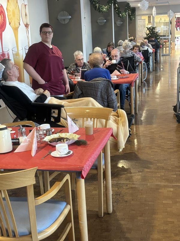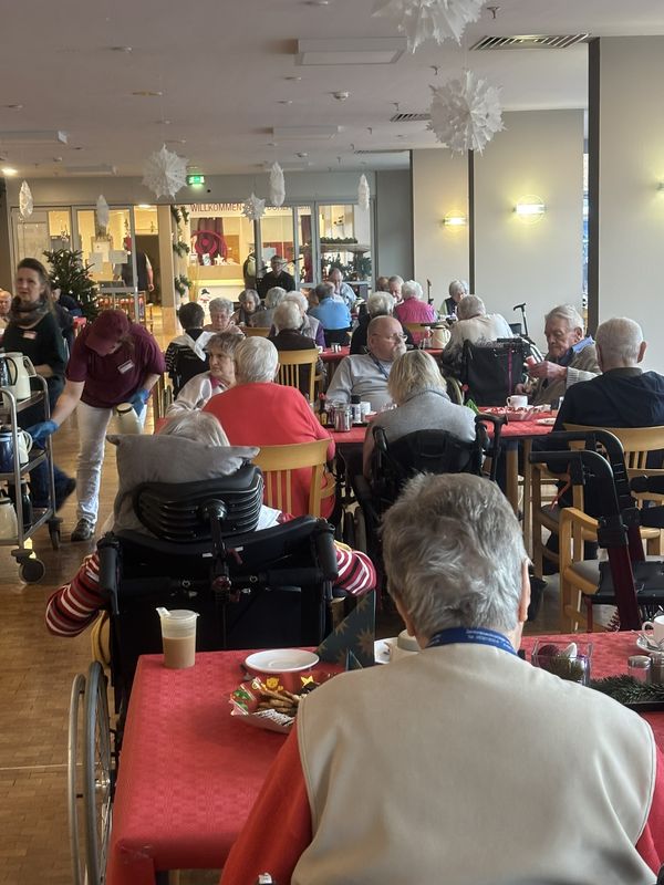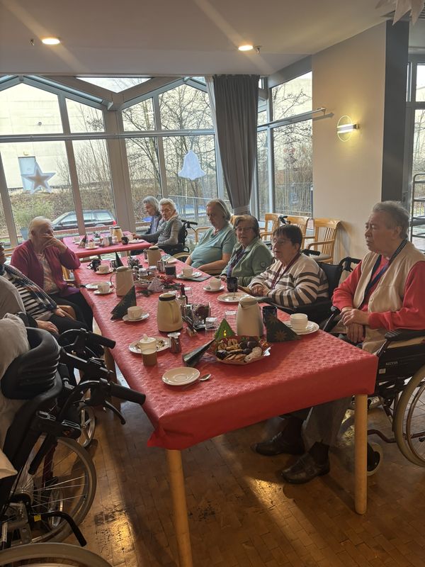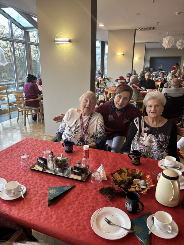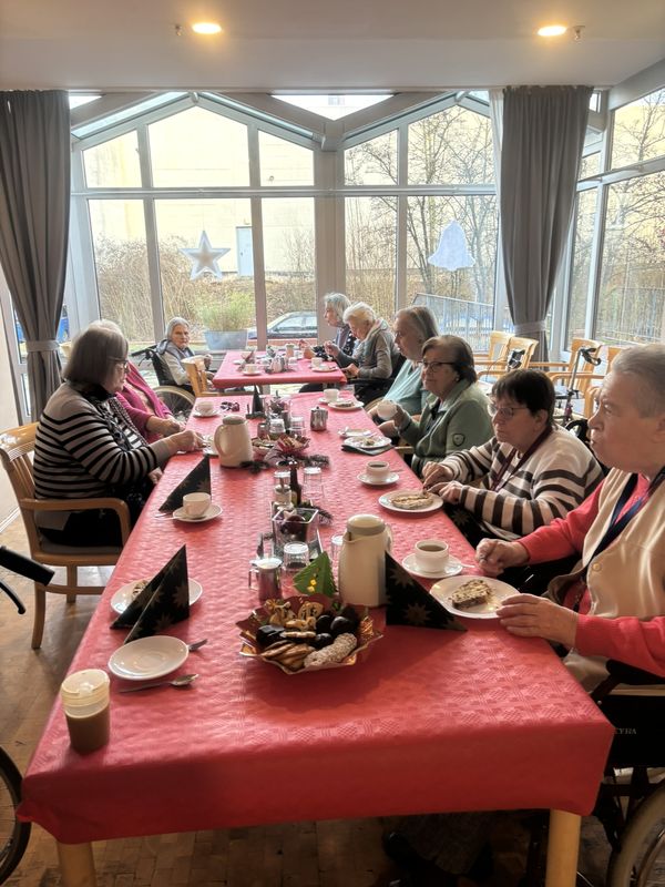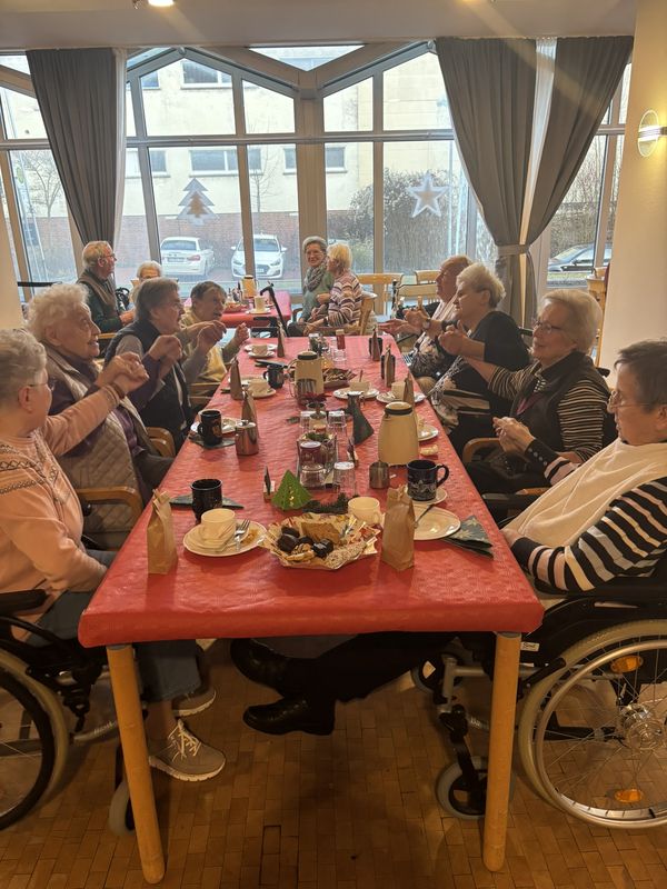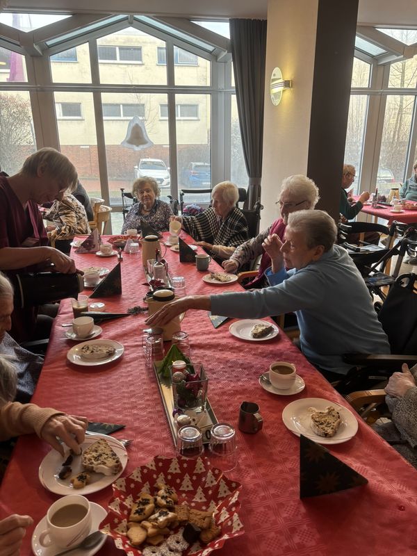 Am 16.12.2025 fand unsere große Weihnachtsfeier für alle Bewohnerinnen und Bewohner statt. Im festlich eingedeckten Hausrestaurant traf man sich zu Kaffee und Kuchen. Bei weihnachtlicher Musik wurden gemeinsam die altbekannten Weihnachtslieder gesungen und es wurden Geschichten und Gedichte vorgelesen.