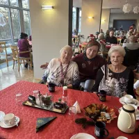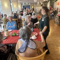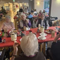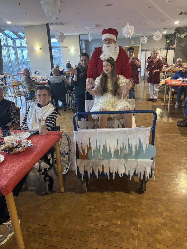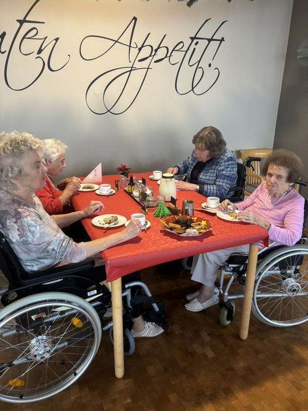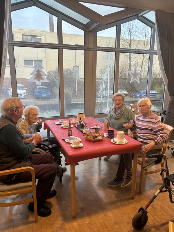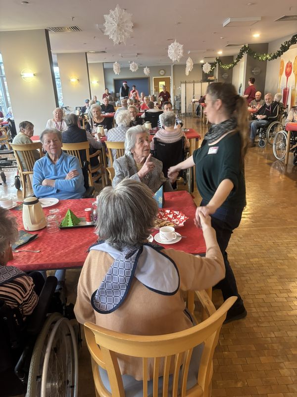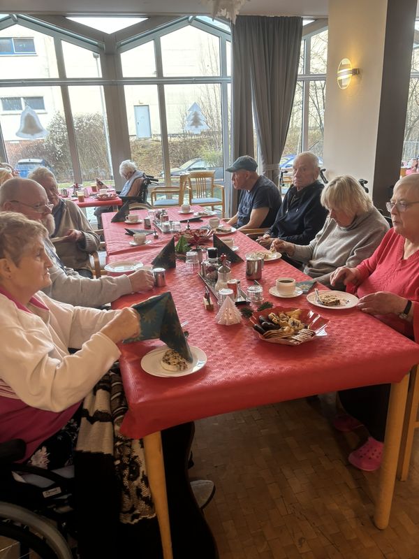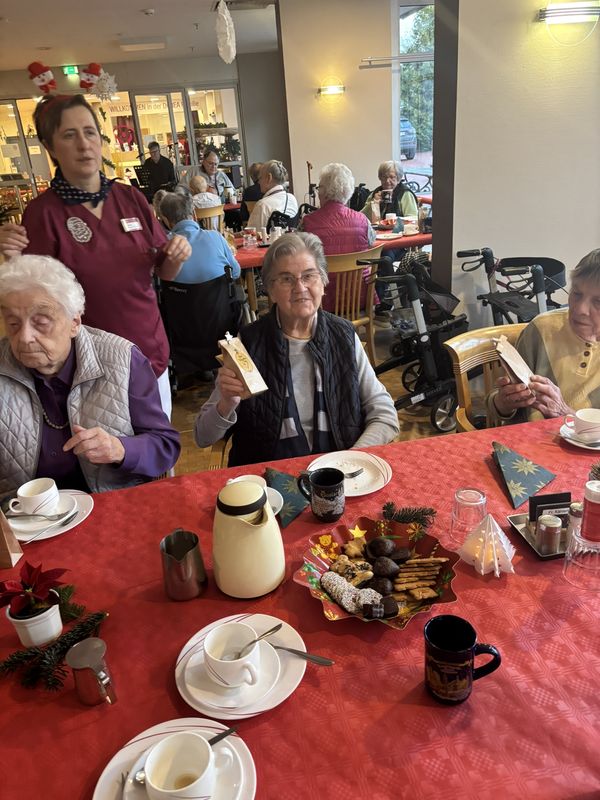 Am 16.12.2025 fand unsere große Weihnachtsfeier für alle Bewohnerinnen und Bewohner statt. Im festlich eingedeckten Hausrestaurant traf man sich zu Kaffee und Kuchen. Bei weihnachtlicher Musik wurden gemeinsam die altbekannten Weihnachtslieder gesungen und es wurden Geschichten und Gedichte vorgelesen.