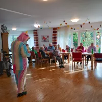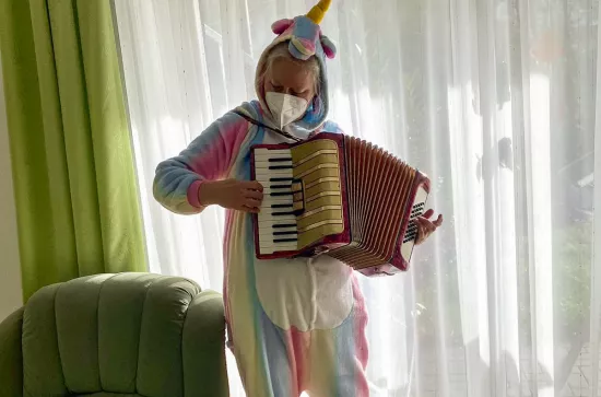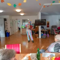 Auch wenn Helberhausen keine Karnevalshochburg ist, so ließ es sich unsere Mitarbeiterin Sonja trotzdem nicht nehmen, am 11.11. bunt verkleidet mit ihrem Schifferklavier ein kleines Ständchen für unsere Bewohner einzustimmen. Alle sangen begeistert mit und freuten sich über die musikalische Unterhaltung.