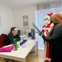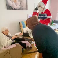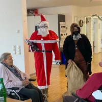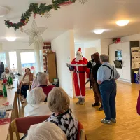 Alle warteten schon gespannt ob der Nikolaus auch dieses Jahr wieder vorbei kommt. Und tatsächlich, plötzlich stand er in der Tür und überraschte unsere Bewohner und Tagesgäste. Mit im Gepäck hatte er nicht nur Knecht Ruprecht und einen Engel, sondern auch kleine Geschenke für unsere Bewohner/ Tagesgäste. Selbst unserer Kunden von "Essen auf Rädern" bekamen das Essen heute vom Nikolaus überreicht.