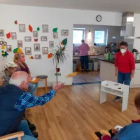 Wenn unsere Bewohner nicht zum Oktoberfest kommen, dann kommt eben das Oktoberfest zu unseren Bewohnern. Das hat sich unsere Wohngemeinschaft in Alchen gedacht und kurzerhand einen kleinen Jahrmarkt auf die Beine gestellt. Ganz traditionell mit Dosenwerfen und Nägel hämmern und auch beim Essen blieb man typisch bayrisch. Mit einer zünftigen Weißwurst mit Krautsalat und süßen Senf ließen es sich unsere Bewohner gut gehen.