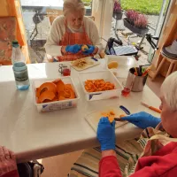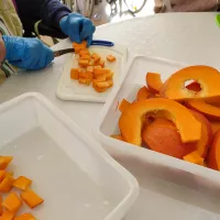 Und schon war es wieder soweit und unser Koch Club hatte sein Treffen. Diesmal sollte auf dem Speiseplan stehen, als Hauptgang eine leckere Kürbissuppe und als Nachtisch eine Mascarpone Creme mit Roter Grütze. Damit das Essen auch pünktlich serviert werden kann, machten sich alle Bewohner schnell an die Arbeit. Unser Koch Club ist gut eingespielt und somit waren die Vorbereitungen schnell erledigt und es konnte ans kochen gehen. Parallel wurde der Nachtisch vorbereitet, eine Mischung aus Mascarpone, Joghurt, Schlagsahne und Quark, und obendrauf ein Löffel Roter Grütze.