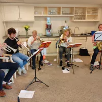 Gemeinsam mit unseren Bewohner:innen feierte unser Einrichtungsleiter Herr Diakon Matthews eine Pfingstandacht. Dabei schauten wir auch nach vorne auf den Dreifaltigkeitssonntag. Begleitet wurde unsere Andacht von den "Brazz Bläsern". Herzlichen Dank für die musikalische Begleitung. Im Anschluss an die Andacht spielten die Musiker noch weiter beliebte Lieder und unsere Bewohner:innen genossen die schöne Musik.