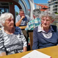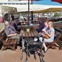 Bei Kaiserwetter und strahlendem Sonnenschein machte sich in der vergangenen Woche eine Gruppe Bewohner:innen mit unserer Betreuung auf nach Bremerhaven zur "Dicke-Pötte-Tour", einer Hafenrundfahrt mit der "Hein Mück". Beeindruckende Ozeanriesen gab es in den weitläufigen Hafenbecken zu bewundern, und der Captain hatte dazu einige kurzweilige Anekdoten zu erzählen. Abgerundet wurde dieser aufregende Ausflug durch den Genuss von Kaffee und Schorle, gekrönt von einem schmackhaften Fischbrötchen.