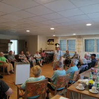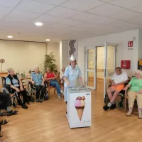 Wenn die Temperaturen die 30°-Marke übersteigen, hilft nur noch Schatten und viel Trinken. Eine willkommene Abwechslung ist auch immer wieder unsere mobile Speiseeisausgabe. Gerne kommt man zusammen und genießt die eine oder andere Eisspezialität in netter Gemeinschaft. So halten es die Bewohner:innen auch an den Hundstagen gut aus.