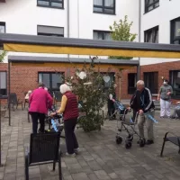 Zünftig soll es zugehen beim diesjährigen Oktoberfest. Der Wiesn-Baum ist zwar etwas dürftig ausgefallen und hat schon vor dem Schmücken "die Flügel hängen lassen". Aber davon ließen sich die Bewohnerinnen und Bewohner nicht die Laune verderben, schließlich hatte man ja schon seit Tagen den Rollatortanz um den Baum ausgiebig geprobt. Entsprechend groß war die Vorfreude und Anspannung, als es endlich losging. Couragiert bewegten die Seniorinnen und Senioren die Rollstühle und Rollatoren um das Bäumchen, und nach Ende des Tanzes blitzte in so manchem Auge der Stolz ob der erbrachten Leistung. So wurde Freude getankt für das am Folgetag anstehende bayrisch geprägte Oktoberfest mit zünftiger Livemusik und bayrischen Spezialitäten. Und für die kommenden Jahre wurde beschlossen, einen dauerhaften und repräsentativen Mai- und Oktoberfestbaum zu gestalten.