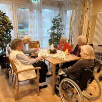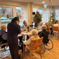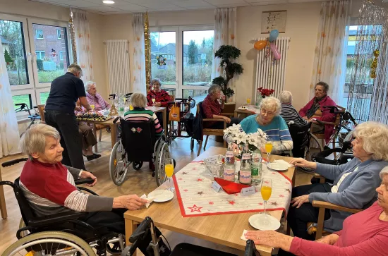 Zum Jahresabschluss wurden nochmal alle Bewohnerinnen und Bewohner des Hauses auf einen geselligen Frühschoppen eingeladen. Zu Sekt und Fruchtsäften wurden leckere Canapes mit Lachs und Käsespieße mit Trauben gereicht. Man tauschte sich über gute Vorsätze und bekannte Silvesterbräuche aus.