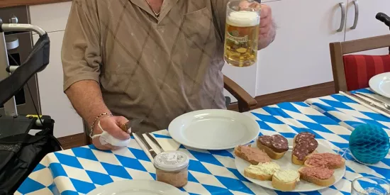 In unserer hauseigenen Küche werden die täglichen Mahlzeiten frisch zubereitet: Vom Frühstück über Zwischenmahlzeit, Mittagessen und Kaffeezeit bis hin zum Abendessen und dem auf Wunsch servierten spät abendlichen Snack. Auch Diät- oder Schonkost bieten wir Ihnen selbstverständlich gerne an – so kann es sich jede und jeder bei uns schmecken lassen. Das abwechslungsreiche Verpflegungskonzept ist angepasst an die aktuellen Empfehlungen der Deutschen Gesellschaft für Ernährung e.V. (DGE). Auch regionale Spezialitäten sowie die Wünsche der Bewohnerinnen und Bewohner werden dabei natürlich berücksichtigt. Getränke wie Kaffee, Kakao, Tee, Wasser und verschiedene Fruchtgetränke stehen stets zur Verfügung. Private Feiern der Bewohnerinnen und Bewohner sind ebenfalls möglich – wir helfen gerne bei der Vorbereitung.