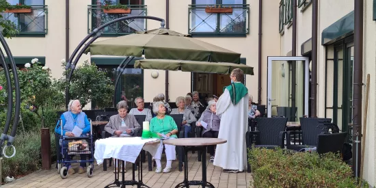 Wir feiern gern. Alle zusammen und wie in einer großen Familie. Dazu nutzen wir vor allem das Restaurant und die angrenzende Terrasse. Jeder Monat bietet willkommene Anlässe für jahreszeitliche Feste. Oder wir laden zum amerikanischen Fest mit Country-Musik und amerikanischen Bürgerinnen und Bürgern der Region als Gästen, oder zum spanischen Fest mit Tapas, Wein und Flamenco ein. Beliebt sind auch unser Abendveranstaltungen, wie der Apfelweinabend, die Bingo Night und die Disco. Darüber hinaus gibt es viele weitere abwechslungsreiche und aktivierende Angebote.