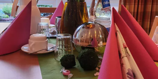 In unserer hauseigenen Küche werden die täglichen Mahlzeiten frisch zubereitet: Vom Frühstück über Zwischenmahlzeit, Mittagessen und Kaffeezeit bis hin zum Abendessen und dem auf Wunsch servierten spät abendlichen Snack. Auch Diät- oder Schonkost bieten wir Ihnen selbstverständlich gerne an – so kann es sich jede und jeder bei uns schmecken lassen. Das abwechslungsreiche Verpflegungskonzept ist angepasst an die aktuellen Empfehlungen der Deutschen Gesellschaft für Ernährung e.V. (DGE). Auch regionale Spezialitäten sowie die Wünsche der Bewohnerinnen und Bewohner werden dabei natürlich berücksichtigt. Getränke wie Kaffee, Kakao, Tee, Wasser und verschiedene Fruchtgetränke stehen stets zur Verfügung. Private Feiern der Bewohnerinnen und Bewohner sind ebenfalls möglich – wir helfen gerne bei der Vorbereitung.