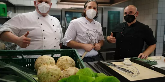 In unserer hauseigenen Küche werden die täglichen Mahlzeiten frisch zubereitet: Vom Frühstück über Zwischenmahlzeit, Mittagessen und Kaffeezeit bis hin zum Abendessen und dem auf Wunsch servierten spät abendlichen Snack. Auch Diät- oder Schonkost bieten wir Ihnen selbstverständlich gerne an – so kann es sich jede und jeder bei uns schmecken lassen. Das abwechslungsreiche Verpflegungskonzept ist angepasst an die aktuellen Empfehlungen der Deutschen Gesellschaft für Ernährung e.V. (DGE). Auch regionale Spezialitäten sowie die Wünsche der Bewohnerinnen und Bewohner werden dabei natürlich berücksichtigt. Getränke wie Kaffee, Kakao, Tee, Wasser und verschiedene Fruchtgetränke stehen stets zur Verfügung. Private Feiern der Bewohnerinnen und Bewohner sind ebenfalls möglich – wir helfen gerne bei der Vorbereitung.