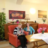 In der Gemeinschaft unseres Pflegeheims werden Sie sich gewiss wohlfühlen. Die sechs individuell gestalteten Wohnbereiche sind auf drei Etagen verteilt. Sie tragen Namen, die an beliebte Ferienziele erinnern: Ob Ostsee, Nordsee, Gardasee, Toskana, Südsee oder die Oase: Jeder Wohnbereich hat sein eigenes Gesicht. Unsere Einrichtung bietet 120 behagliche Einzelzimmer und zwei Doppelzimmer speziell für Eheleute. Die hellen Zimmer sind so ansprechend wie komfortabel ausgestattet mit einem Pflegebett, einem Nachttisch und Kleiderschrank. Eigene Möbelstücke wie ein Lieblingssessel, Erinnerungsstücke, Bilder und Fotos können sehr gern mitkommen, um das Zuhause-Gefühl von Anfang an zu verstärken. Unser Hausmeisterdienst hilft Ihnen jederzeit gern bei kleineren handwerklichen Arbeiten. Auch Ihr Haustier kann nach Absprache mit uns einziehen. Bitte sprechen Sie uns rechtzeitig darauf an.