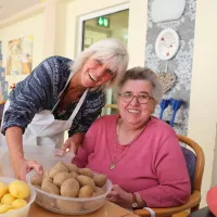 In unserer hauseigenen Küche werden die täglichen Mahlzeiten frisch zubereitet: Vom Frühstück über Zwischenmahlzeit, Mittagessen und Kaffeezeit bis hin zum Abendessen und dem auf Wunsch servierten spät abendlichen Snack. Auch Diät- oder Schonkost bieten wir Ihnen selbstverständlich gerne an – so kann es sich jede und jeder bei uns schmecken lassen. Das abwechslungsreiche Verpflegungskonzept ist angepasst an die aktuellen Empfehlungen der Deutschen Gesellschaft für Ernährung e.V. (DGE). Auch regionale Spezialitäten sowie die Wünsche der Bewohnerinnen und Bewohner werden dabei natürlich berücksichtigt. Getränke wie Kaffee, Kakao, Tee, Wasser und verschiedene Fruchtgetränke stehen stets zur Verfügung. Private Feiern der Bewohnerinnen und Bewohner sind ebenfalls möglich – wir helfen gerne bei der Vorbereitung.