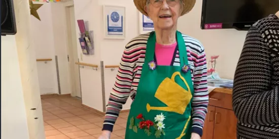 Demenziell veränderte Menschen sind in das Leben unserer Pflegeeinrichtung integriert. Zur besseren Orientierung dienen Bilder mit Blumen-Motiven: In einem Flur leuchten Sonnenblumen in verschiedenen Variationen, in einem anderen Klatschmohn. Alle Wege in Haus und Garten lassen sich sehr gut mit dem Rollstuhl oder dem Rollator befahren, bis hin zu einem schönen Teich. Terrassen mit Sonnenschirmen und Gartenstühlen laden zum Entspannen ein, auch in unserem geschützten Innenhof.