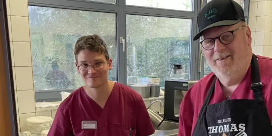 In unserer hauseigenen Küche werden die täglichen Mahlzeiten frisch zubereitet: Vom Frühstück über Zwischenmahlzeit, Mittagessen und Kaffeezeit bis hin zum Abendessen und dem auf Wunsch servierten spät abendlichen Snack. Auch Diät- oder Schonkost bieten wir Ihnen selbstverständlich gerne an – so kann es sich jede und jeder bei uns schmecken lassen. Das abwechslungsreiche Verpflegungskonzept ist angepasst an die aktuellen Empfehlungen der Deutschen Gesellschaft für Ernährung e.V. (DGE). Auch regionale Spezialitäten sowie die Wünsche der Bewohnerinnen und Bewohner werden dabei natürlich berücksichtigt. Getränke wie Kaffee, Kakao, Tee, Wasser und verschiedene Fruchtgetränke stehen stets zur Verfügung. Private Feiern der Bewohnerinnen und Bewohner sind ebenfalls möglich – wir helfen gerne bei der Vorbereitung.
