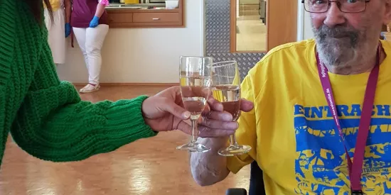 Gäste unserer Bewohnerinnen und Bewohner sind immer herzlich willkommen. Für private Feiern können Sie die Friesenstube buchen, in der warmen Jahreszeit auch eine unserer Sonnenterrassen.