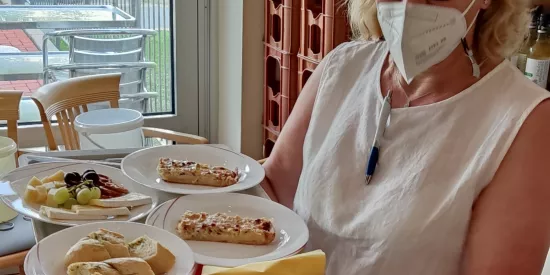 In unserer hauseigenen Küche werden die täglichen Mahlzeiten frisch zubereitet: Vom Frühstück über Zwischenmahlzeit, Mittagessen und Kaffeezeit bis hin zum Abendessen und dem auf Wunsch servierten spät abendlichen Snack. Auch Diät- oder Schonkost bieten wir Ihnen selbstverständlich gerne an – so kann es sich jede und jeder bei uns schmecken lassen. Das abwechslungsreiche Verpflegungskonzept ist angepasst an die aktuellen Empfehlungen der Deutschen Gesellschaft für Ernährung e.V. (DGE). Auch regionale Spezialitäten sowie die Wünsche der Bewohnerinnen und Bewohner werden dabei natürlich berücksichtigt. Getränke wie Kaffee, Kakao, Tee, Wasser und verschiedene Fruchtgetränke stehen stets zur Verfügung. Private Feiern der Bewohnerinnen und Bewohner sind ebenfalls möglich – wir helfen gerne bei der Vorbereitung.