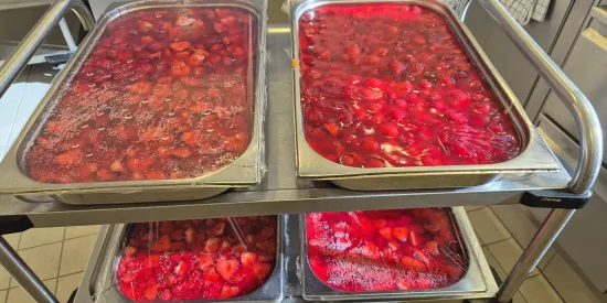 In unserer hauseigenen Küche werden die täglichen Mahlzeiten frisch zubereitet: Vom Frühstück über Zwischenmahlzeit, Mittagessen und Kaffeezeit bis hin zum Abendessen und dem auf Wunsch servierten spät abendlichen Snack. Auch Diät- oder Schonkost bieten wir Ihnen selbstverständlich gerne an – so kann es sich jede und jeder bei uns schmecken lassen. Das abwechslungsreiche Verpflegungskonzept ist angepasst an die aktuellen Empfehlungen der Deutschen Gesellschaft für Ernährung e.V. (DGE). Auch regionale Spezialitäten sowie die Wünsche der Bewohnerinnen und Bewohner werden dabei natürlich berücksichtigt. Getränke wie Kaffee, Kakao, Tee, Wasser und verschiedene Fruchtgetränke stehen stets zur Verfügung. Private Feiern der Bewohnerinnen und Bewohner sind ebenfalls möglich – wir helfen gerne bei der Vorbereitung.