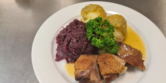 In unserer hauseigenen Küche werden die täglichen Mahlzeiten frisch zubereitet: Vom Frühstück über Zwischenmahlzeit, Mittagessen und Kaffeezeit bis hin zum Abendessen und dem auf Wunsch servierten spät abendlichen Snack. Auch Diät- oder Schonkost bieten wir Ihnen selbstverständlich gerne an – so kann es sich jede und jeder bei uns schmecken lassen. Das abwechslungsreiche Verpflegungskonzept ist angepasst an die aktuellen Empfehlungen der Deutschen Gesellschaft für Ernährung e.V. (DGE). Auch regionale Spezialitäten sowie die Wünsche der Bewohnerinnen und Bewohner werden dabei natürlich berücksichtigt. Getränke wie Kaffee, Kakao, Tee, Wasser und verschiedene Fruchtgetränke stehen stets zur Verfügung. Private Feiern der Bewohnerinnen und Bewohner sind ebenfalls möglich – wir helfen gerne bei der Vorbereitung.