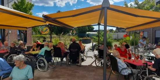 Ein Highlight unseres Hauses ist der weitläufige Außenbereich mit einer traumhaften Gartenanlage und schöner Terrasse. Eine große Beschattungsanlage ermöglicht es unseren Bewohnerinnen und Bewohnern, den Garten im Sommer zu genießen.