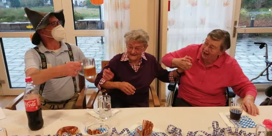 In unserer hauseigenen Küche werden die täglichen Mahlzeiten frisch zubereitet: Vom Frühstück über Zwischenmahlzeit, Mittagessen und Kaffeezeit bis hin zum Abendessen und dem auf Wunsch servierten spät abendlichen Snack. Auch Diät- oder Schonkost bieten wir Ihnen selbstverständlich gerne an – so kann es sich jede und jeder bei uns schmecken lassen. Das abwechslungsreiche Verpflegungskonzept ist angepasst an die aktuellen Empfehlungen der Deutschen Gesellschaft für Ernährung e.V. (DGE). Auch regionale Spezialitäten sowie die Wünsche der Bewohnerinnen und Bewohner werden dabei natürlich berücksichtigt. Getränke wie Kaffee, Kakao, Tee, Wasser und verschiedene Fruchtgetränke stehen stets zur Verfügung. Private Feiern der Bewohnerinnen und Bewohner sind ebenfalls möglich – wir helfen gerne bei der Vorbereitung.