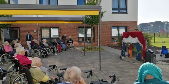 Ein Highlight unseres Hauses ist der weitläufige Außenbereich mit einer traumhaften Gartenanlage und schöner Terrasse. Eine große Beschattungsanlage ermöglicht es unseren Bewohnerinnen und Bewohnern, den Garten im Sommer zu genießen.
